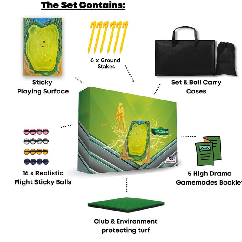 - 16 x Soft Sticky Golf Balls Designed to Mimic Real Golf Ball Flight (4 Colors for 4 Players)
