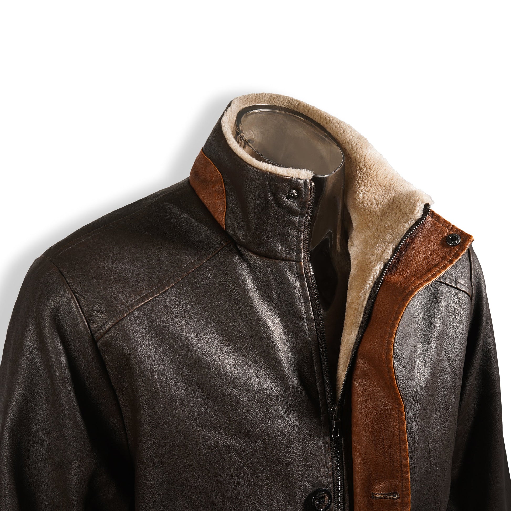 2024 Men's Vintage Double Stand Collar Leather Coat
