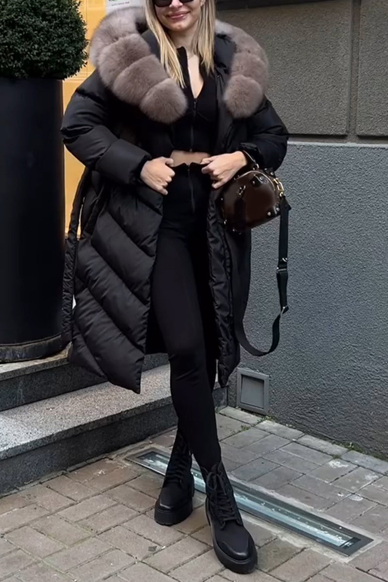 Women's Casual Hooded Mid-Length Thick Waterproof Coat