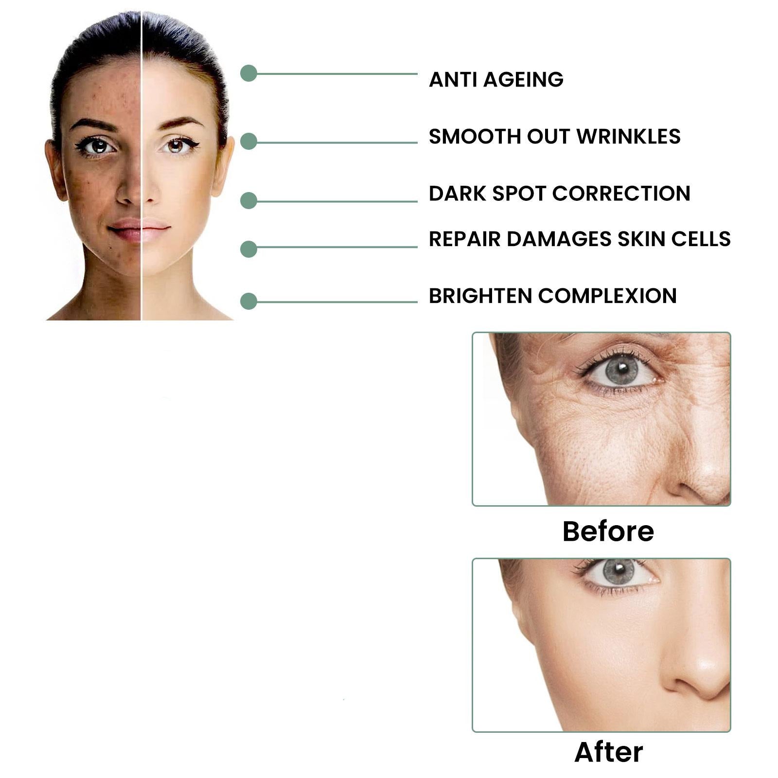 It can solve skin aging problems such as deep wrinkles, fine lines, puffy eyes, dark circles, under eye bags, dark spots, hyperpigmentation, rough texture, and sagging skin, etc.