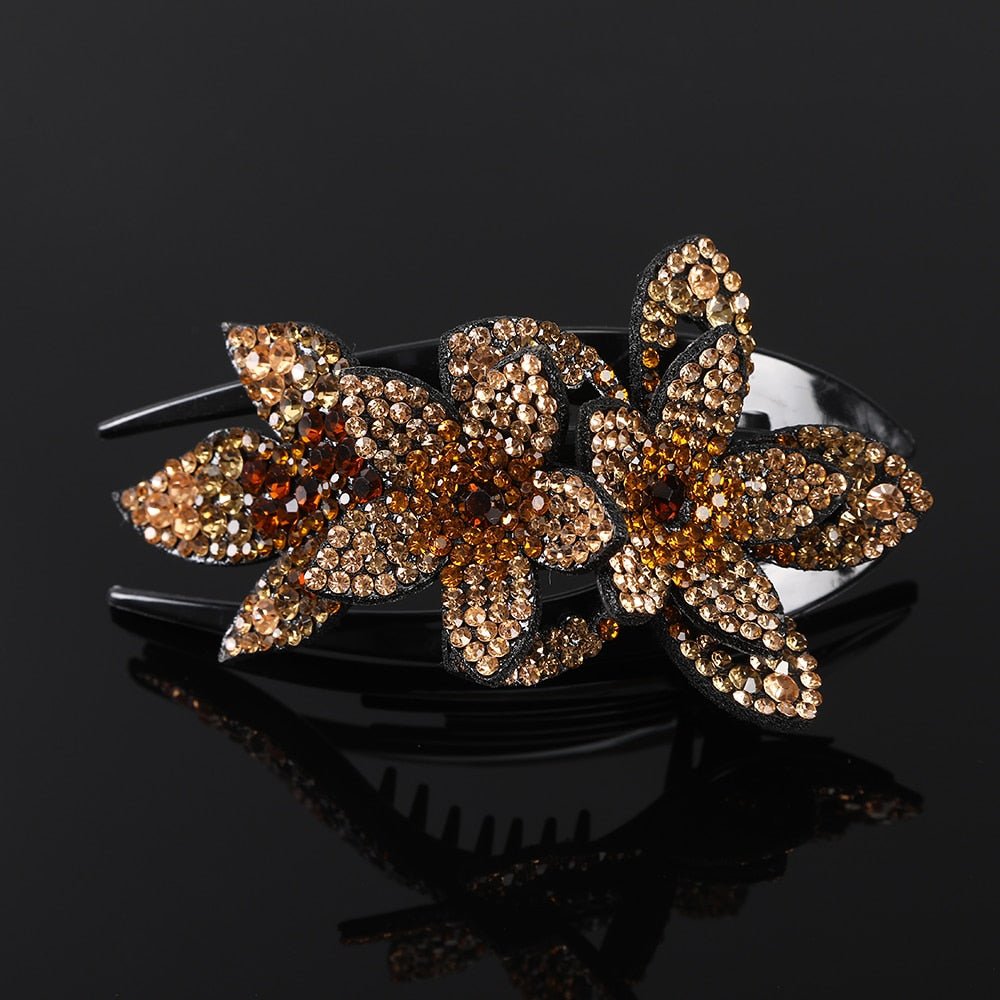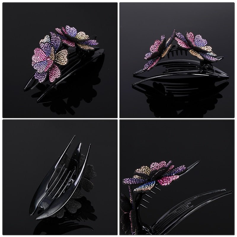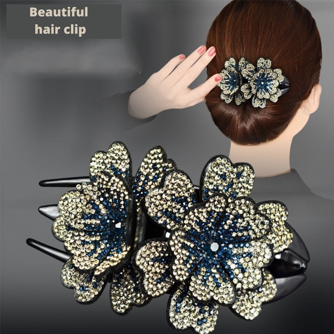 Our hair clip is not only a reliable accessory for all-day hold, but it also features beautiful large flowers adorned with dazzling stones that catch the light and draw attention.