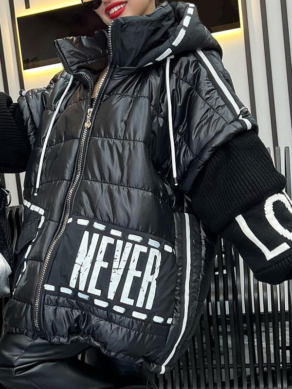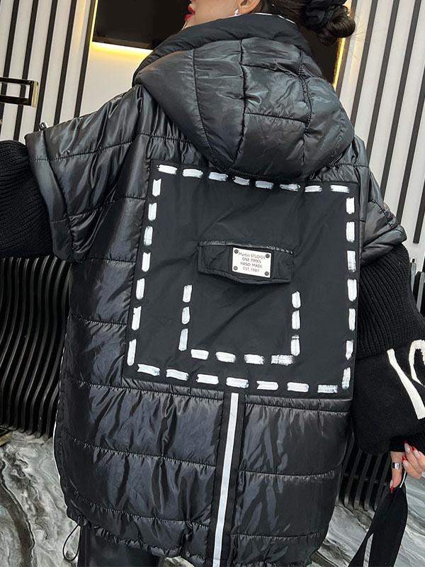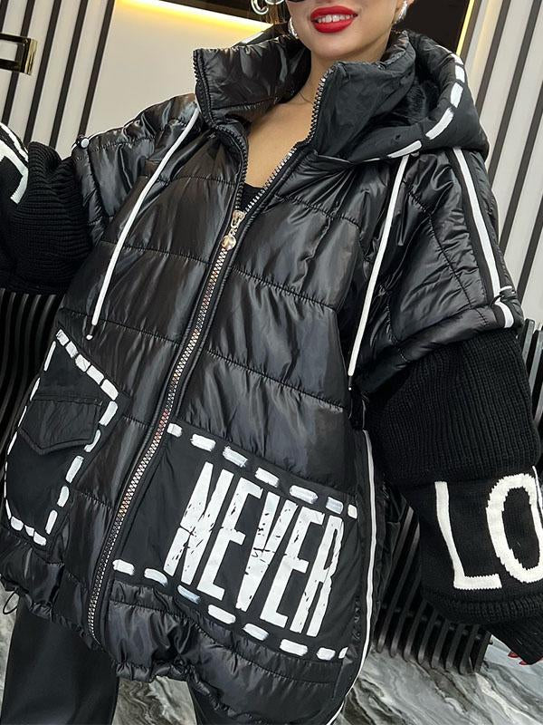Women's Hooded Coat with Patchwork Design