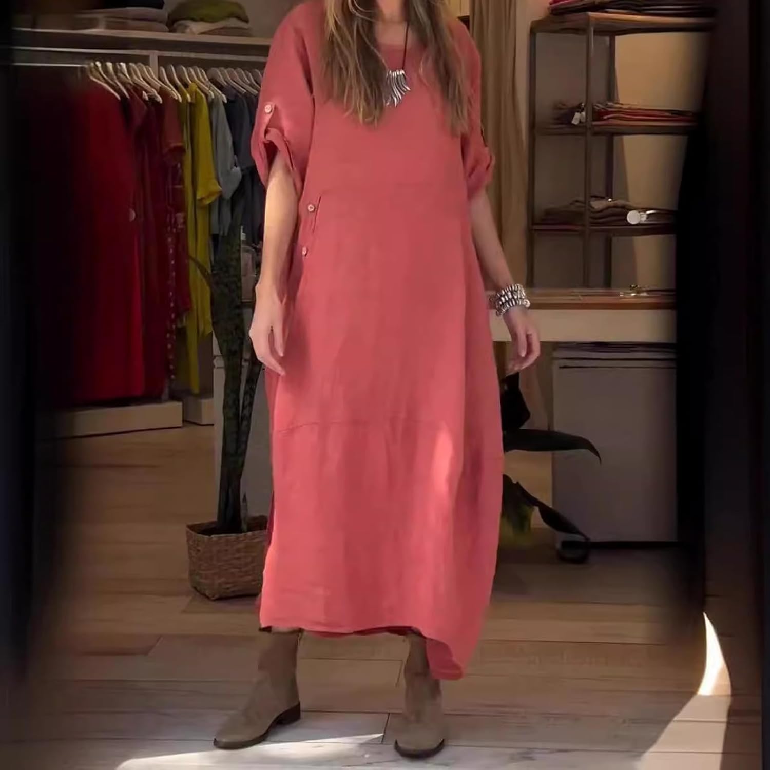 The Jezza - Buttoned Detail Dress blends rustic charm with contemporary ease. Whether you’re stepping into a weekend market or lounging in a sunlit room, this relaxed silhouette with statement button accents creates a grounded, graceful presence that moves with you.