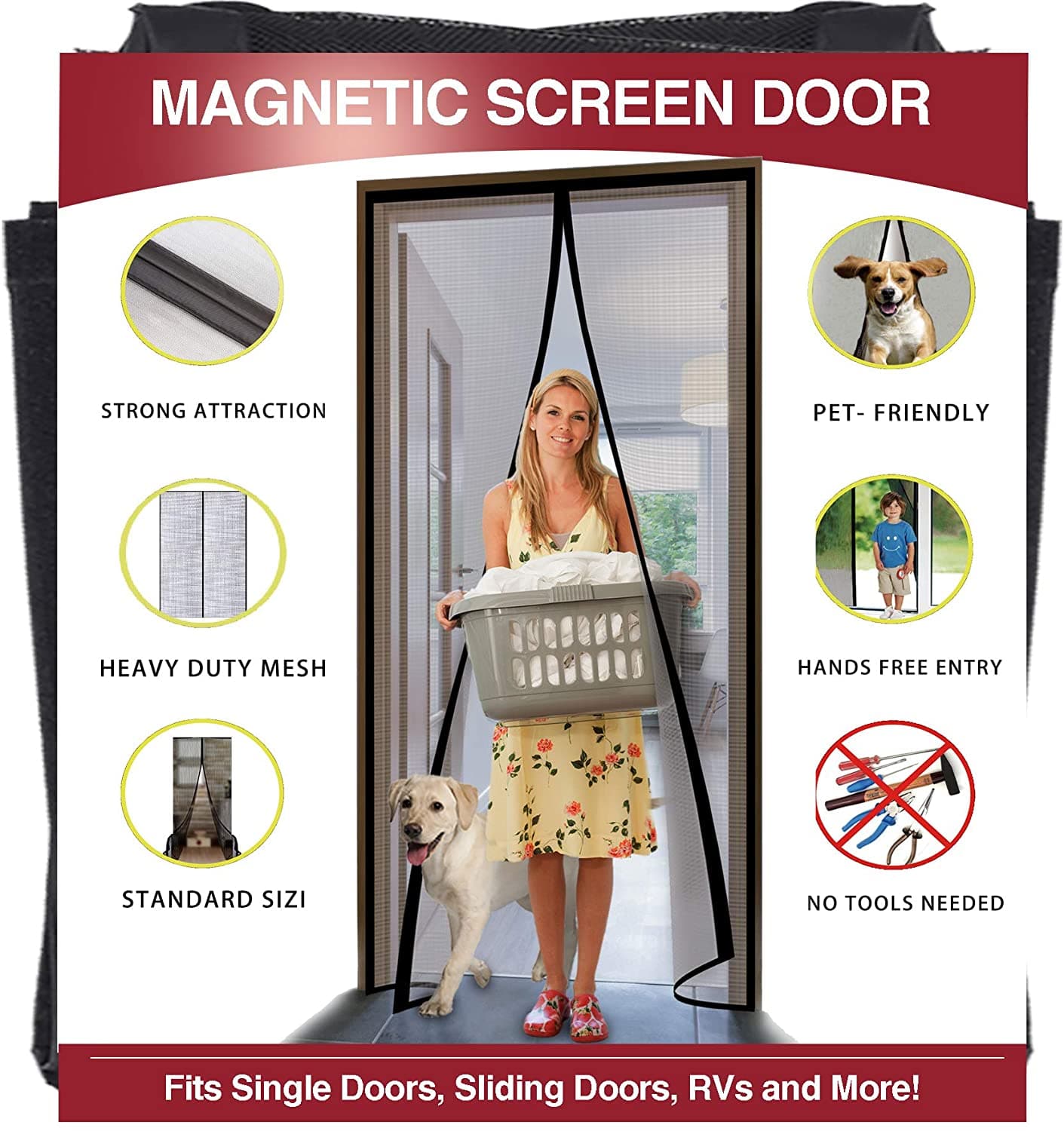 - HUMAN PETS FRIENDLY Magic retractable screen door allows humans to directly walk while your hands are full. Pets like dogs or cats are also easy to go inside and outside of your house. The screen net helps keep insects, mosquitos, and flies out.