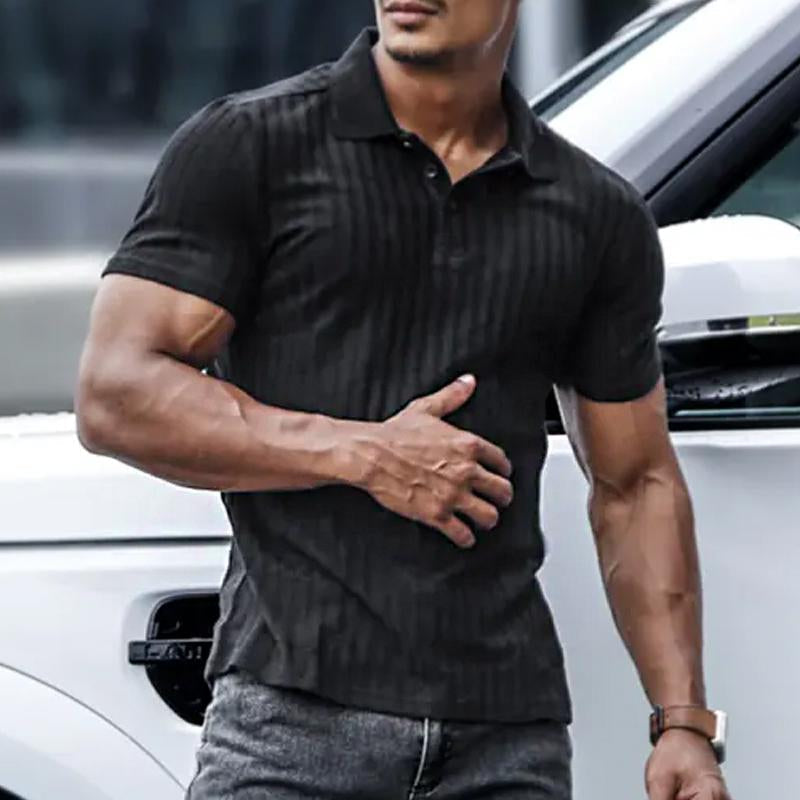 Men's Business Casual Solid Color Vertical Stripe Short Sleeve POLO Shirt 64151606Y