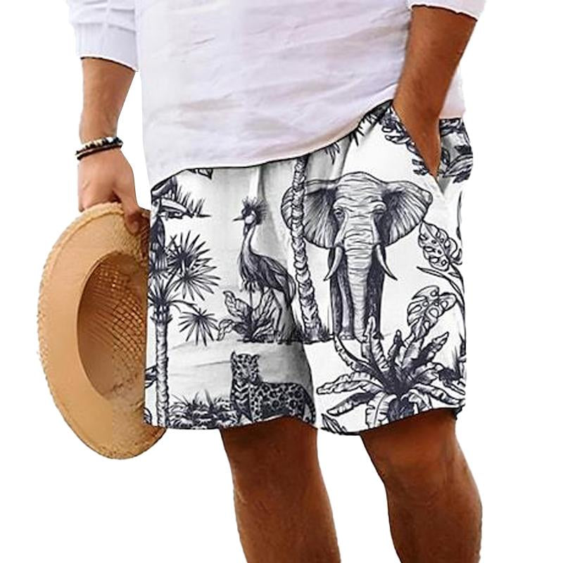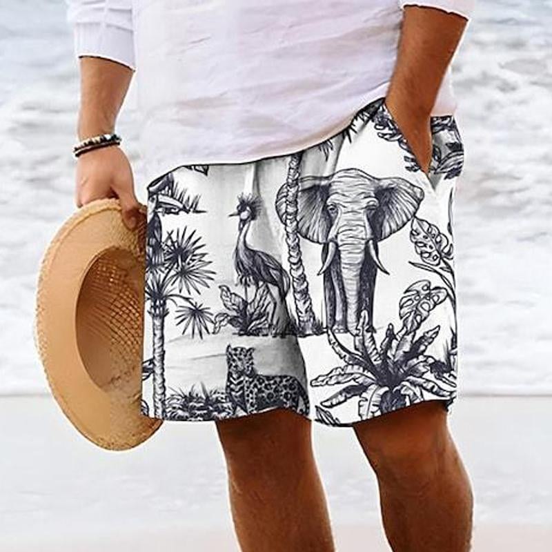 Men's Casual Beach Animal Elephant Print Drawstring Shorts 48706143Y