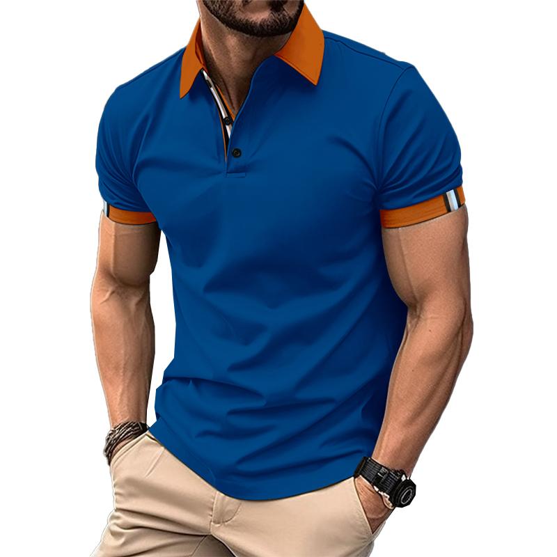 Upgrade your casual wardrobe with the Men's Casual Color Block Lapel Short Sleeve Polo Shirt – a stylish and versatile piece that brings a touch of modern sophistication to your everyday look.