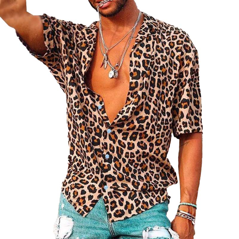 Men's Casual Leopard Print Short Sleeve Shirt 55304358M