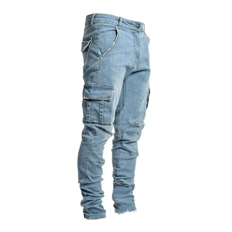 Fashionable men would approve of our skinny jeans. There are smooth slant pockets on both sides, and the leg pockets are designed with buttons, which have large capacity and more secure storage. It is perfect for the outdoors and casual, including hunting, hiking and daily work.