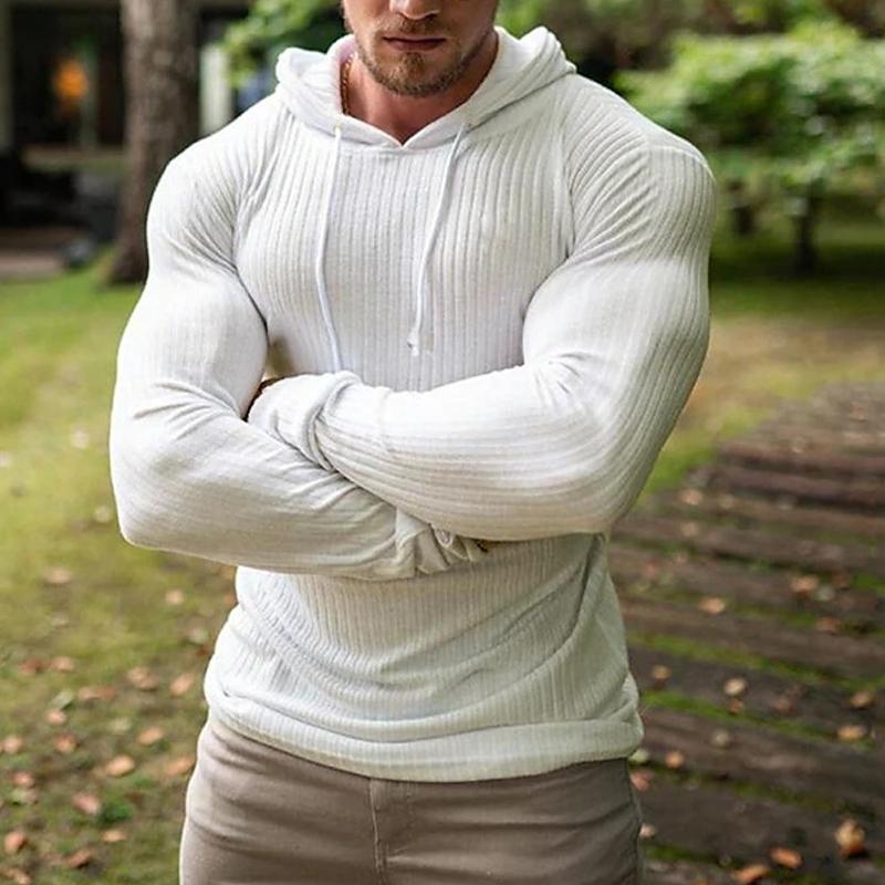 Men's Casual Solid Color Hooded Long Sleeve T-Shirt 53542652Y