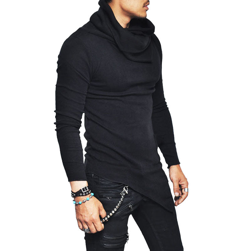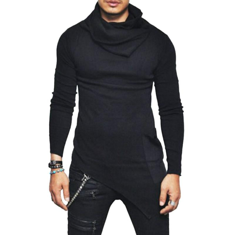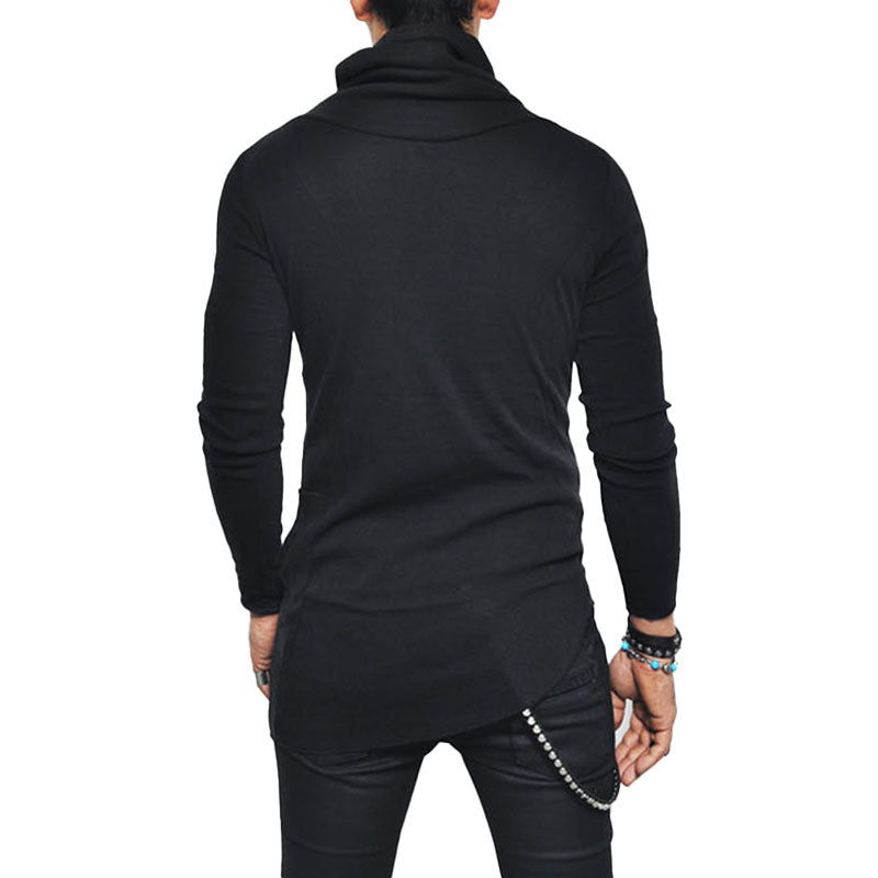 Men's Casual Turtleneck Long Sleeve Irregular Hem T-Shirt 84115926M