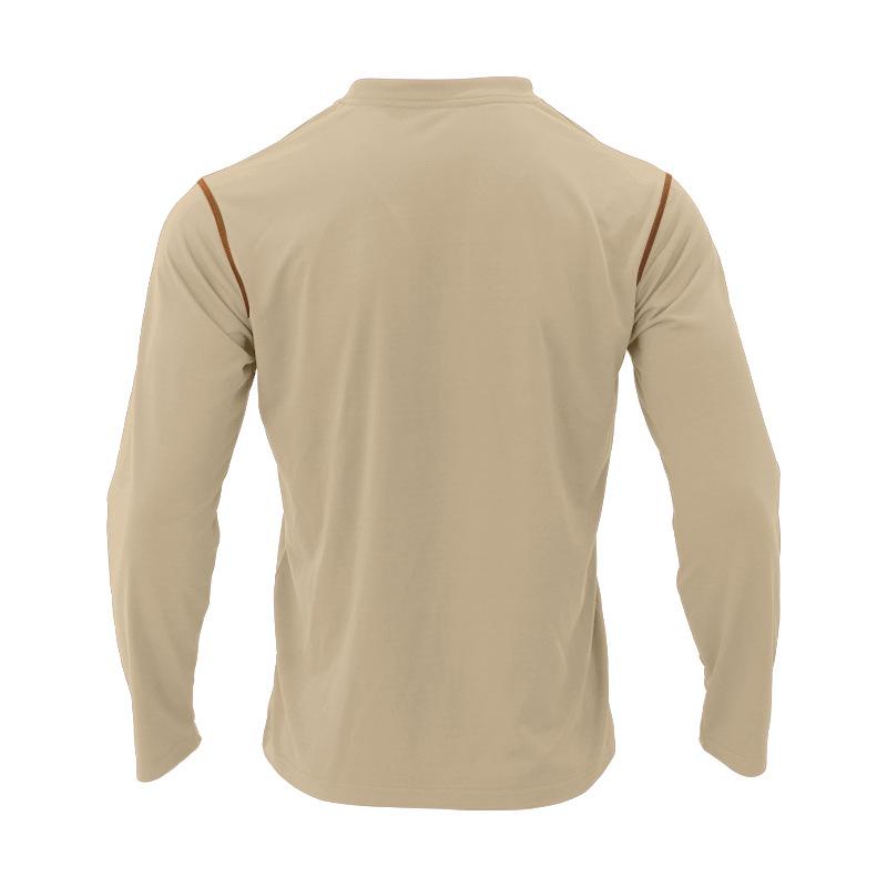 Henley Collar Design: The Henley collar of this shirt provides a modern and casual look. The buttoned placket at the neckline adds a touch of detail and allows for adjustable ventilation, making it a versatile choice for different occasions.