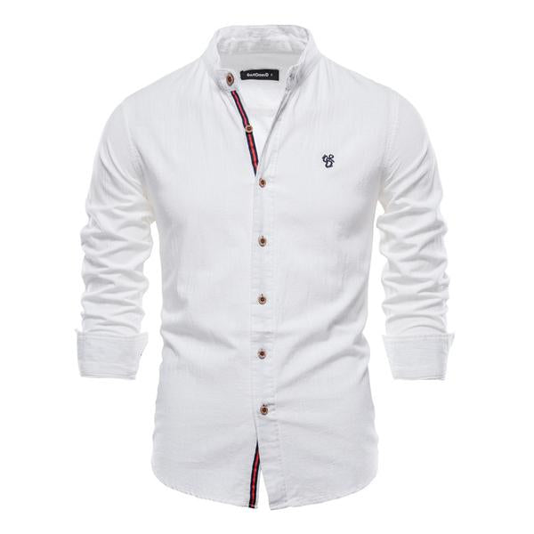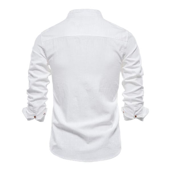 Constructed with elegant and discreet buttons, it will add sparkle to your outfit. It is design in button sleeve, you can roll up the sleeve for smart and sophisticated look or not for a decent and generous look. The men’s cotton linen shirt has an open, one-piece collar, as well as a quite long, relaxed version, so that it can ne used as a useful mid-layer or as a standalone outer layer in hot climates.