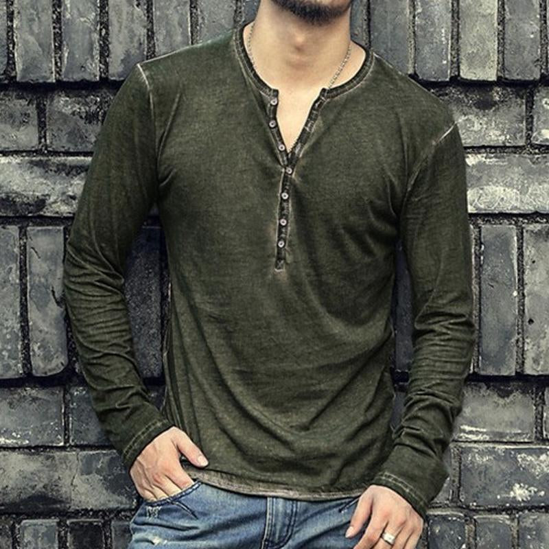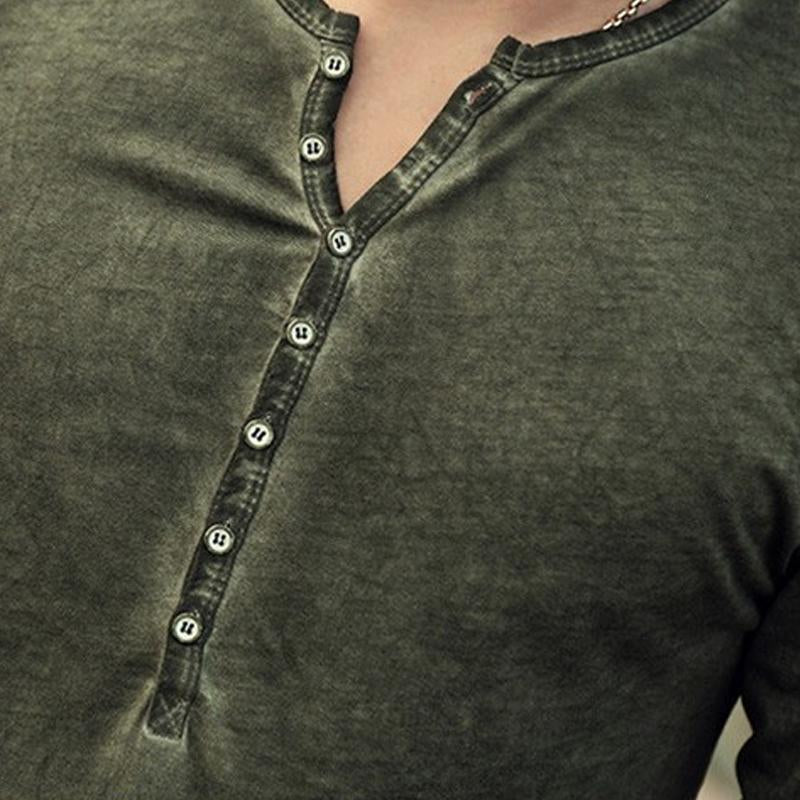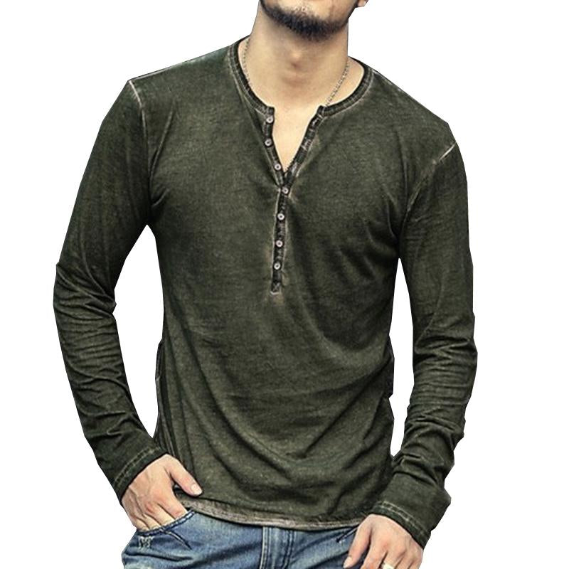 Men's Distressed Vintage Style V-neck Long Sleeve T-Shirt 70724462X