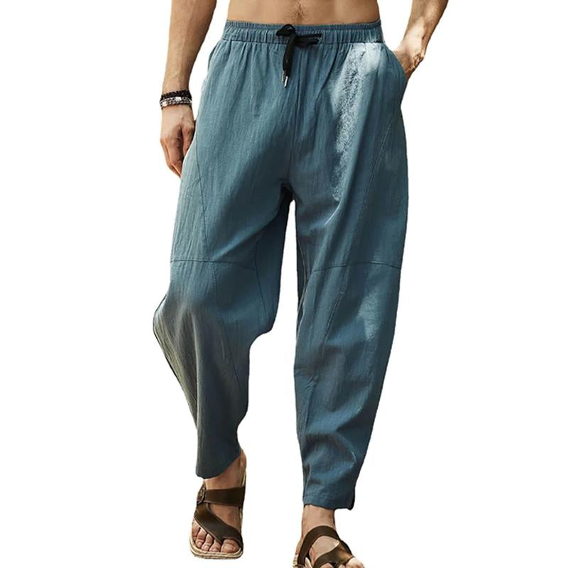 Men's Loose Cotton Linen Solid Color Drawstring Pants 26608017Y