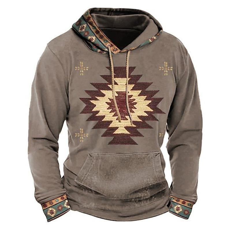 Men's Retro Ethnic Print Hooded Long Sleeve Sweatshirt 40048588Y