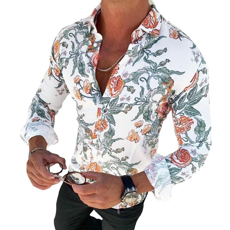 Men's Retro Slim Floral Lapel Shirt 29927596TO