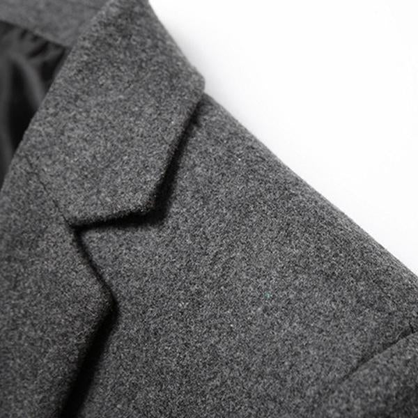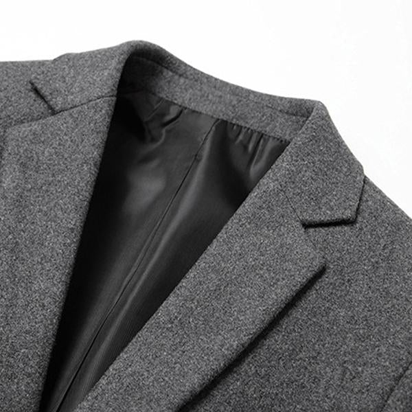 - Design: Three-button placket, resin buttons, one chest patch pocket, two front welt pocket, long sleeve, fully lined
