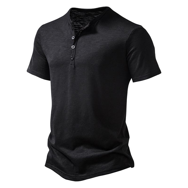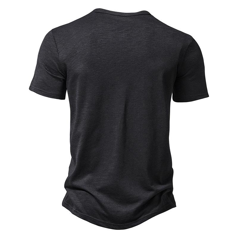 Men's Slub Cotton Henley Collar Short Sleeve T-shirt 84671002Z