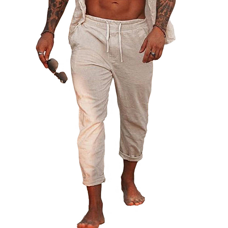 Men's Solid Color Cotton Linen Vacation Pants 45194084Y
