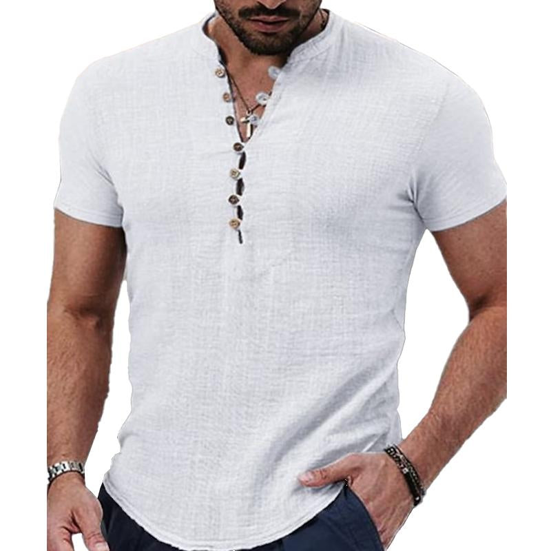 Introducing our Men's Solid Color Stand Collar Button Down Half Cardigan Short Sleeve Shirt, the perfect addition to any modern wardrobe.