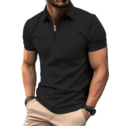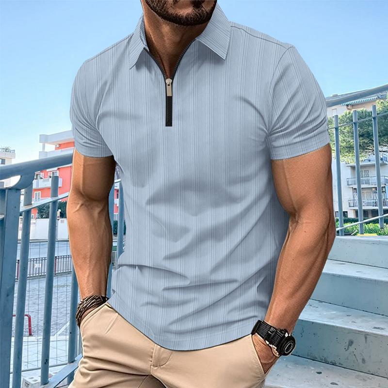 Made from high-quality materials, this shirt is as durable as it is stylish, ensuring it holds up to your active lifestyle while still looking effortlessly chic. Whether paired with shorts for a casual day out or dressed up with trousers for a more polished look, the Men's Solid Color Textured Zip Short Sleeve Polo Shirt is a versatile wardrobe staple for any occasion.
