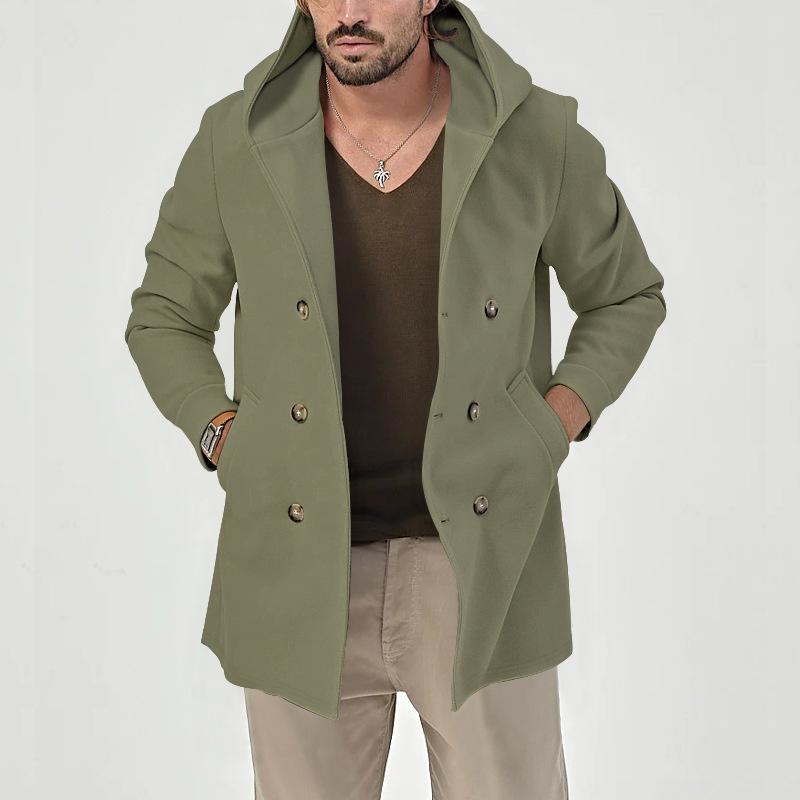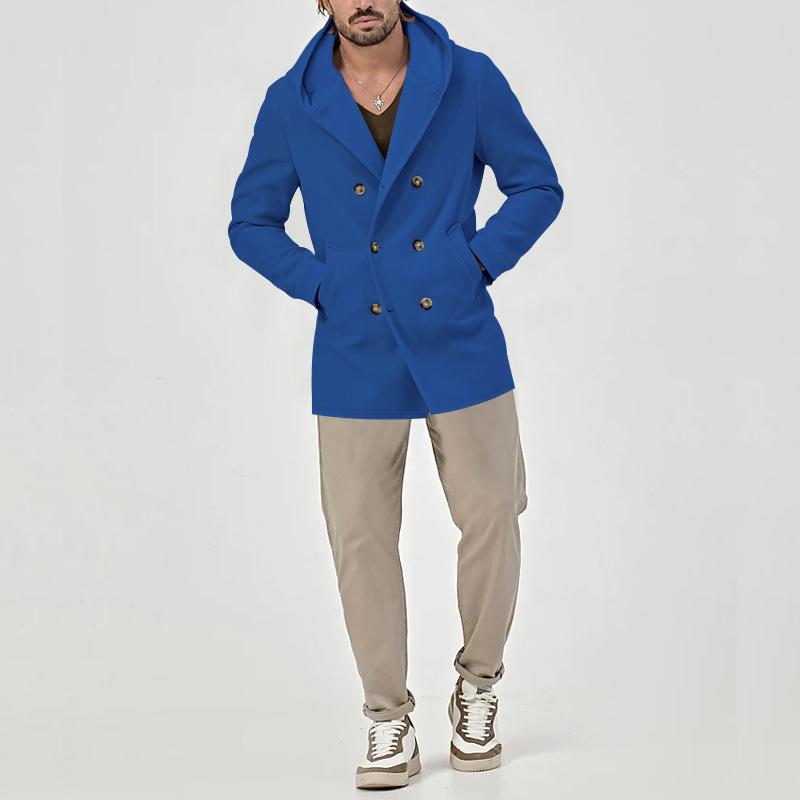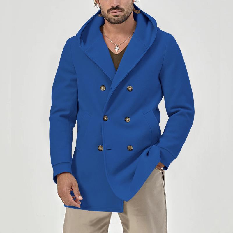 Casual Elegance Redefined: Men's Solid Hooded Double-Breasted Casual Coat