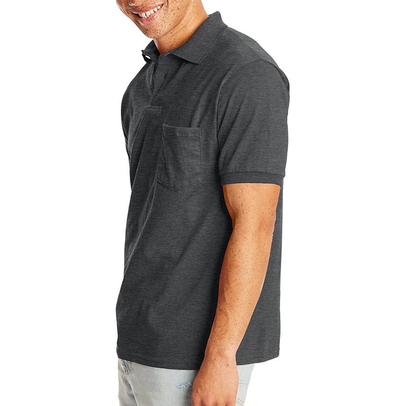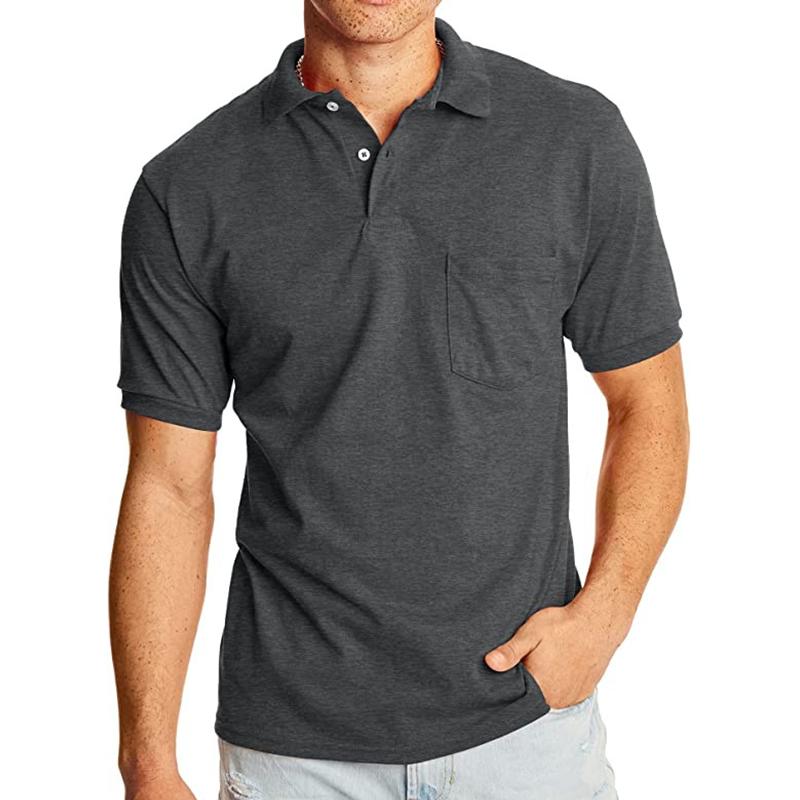 Men's Solid Lapel Breast Pocket Short Sleeve Polo Shirt 02068496Z