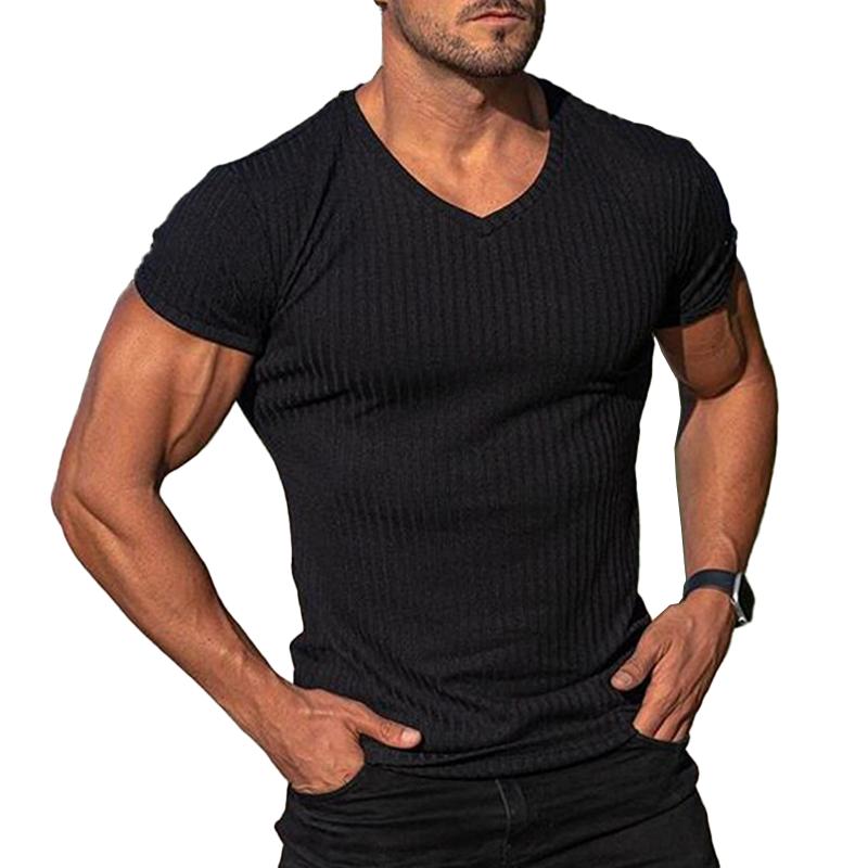 Men's V Neck Short Sleeve Striped T-shirt 10687148Z