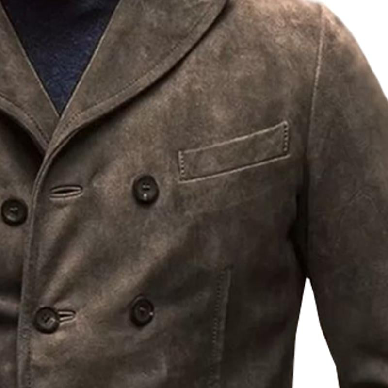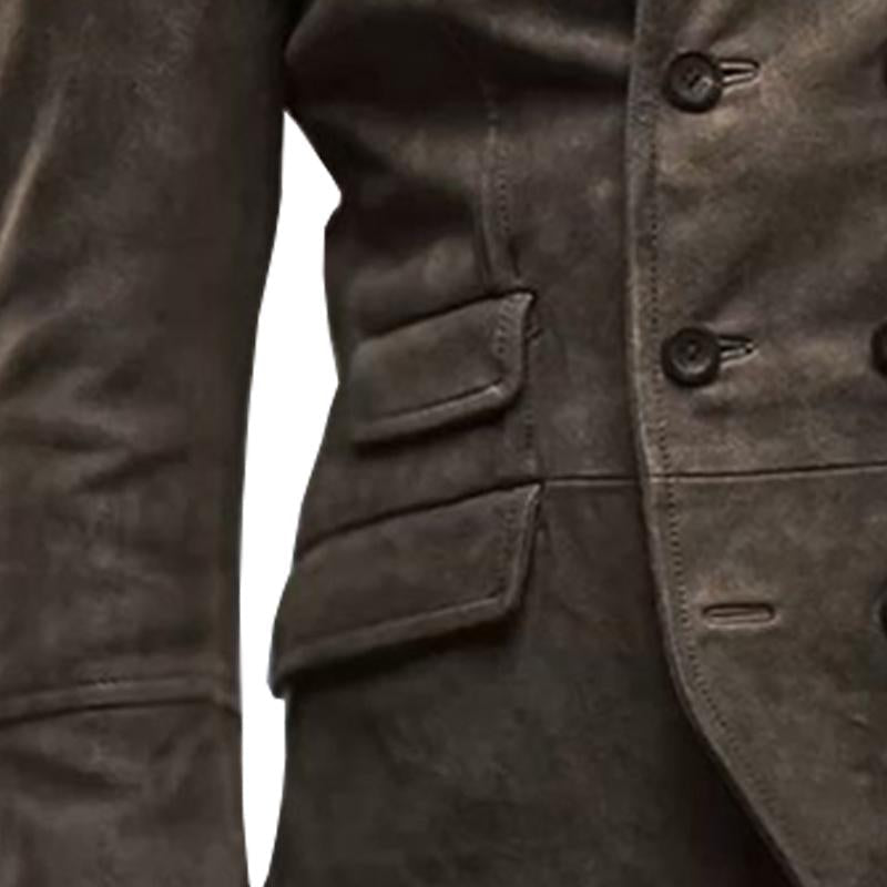 Men's Vintage Distressed Suede Lapel Double-Breasted Blazer 69861994M
