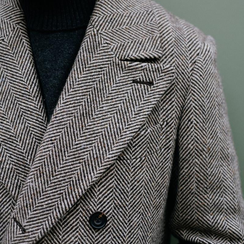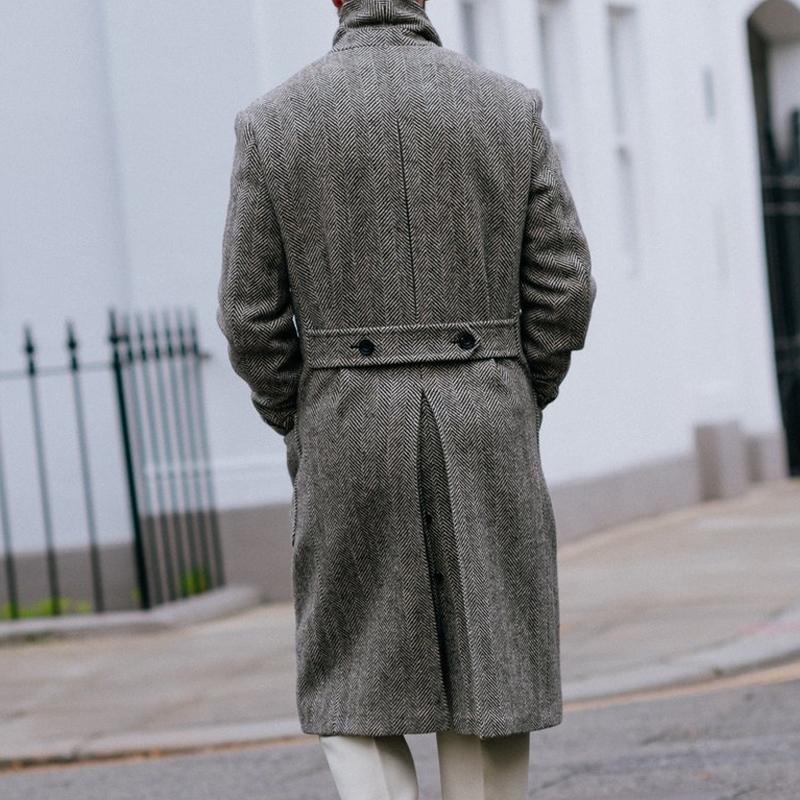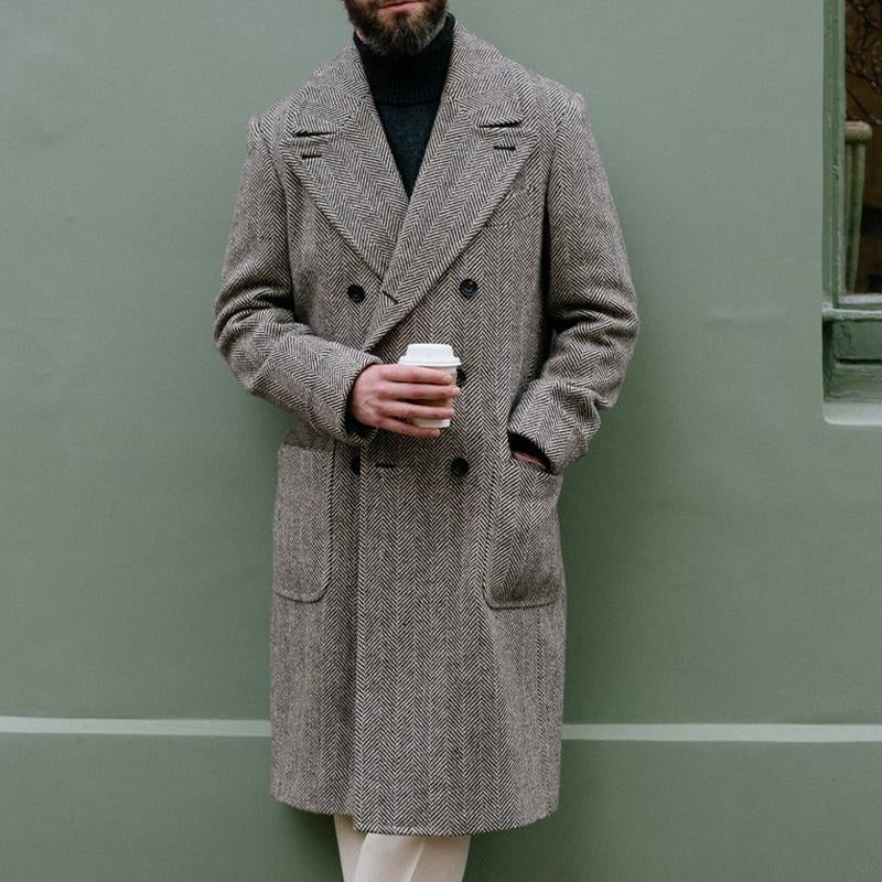 Product Name: Men's Vintage Herringbone Lapel Double Breasted Slim Mid-length Coat