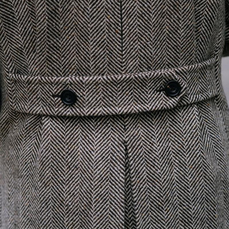 Vintage Herringbone Pattern: The coat showcases a vintage herringbone pattern that adds a touch of sophistication and timeless style to your attire.