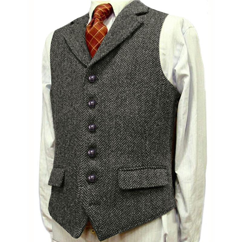Men's Vintage Lapel Herringbone Single Breasted Suit Vest 96979880M