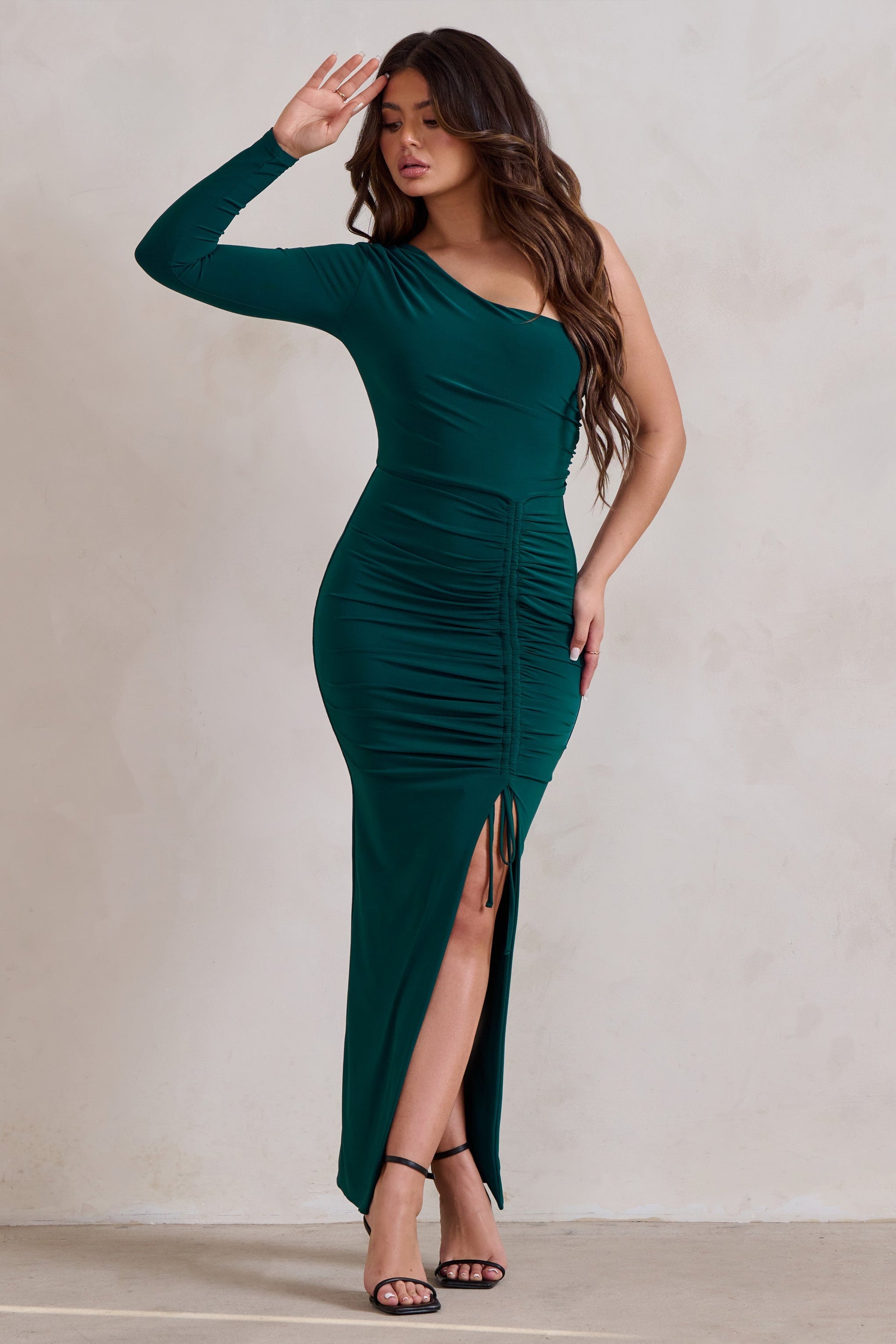 Mystical | Bottle Green One Shoulder Maxi Dress With Side Split