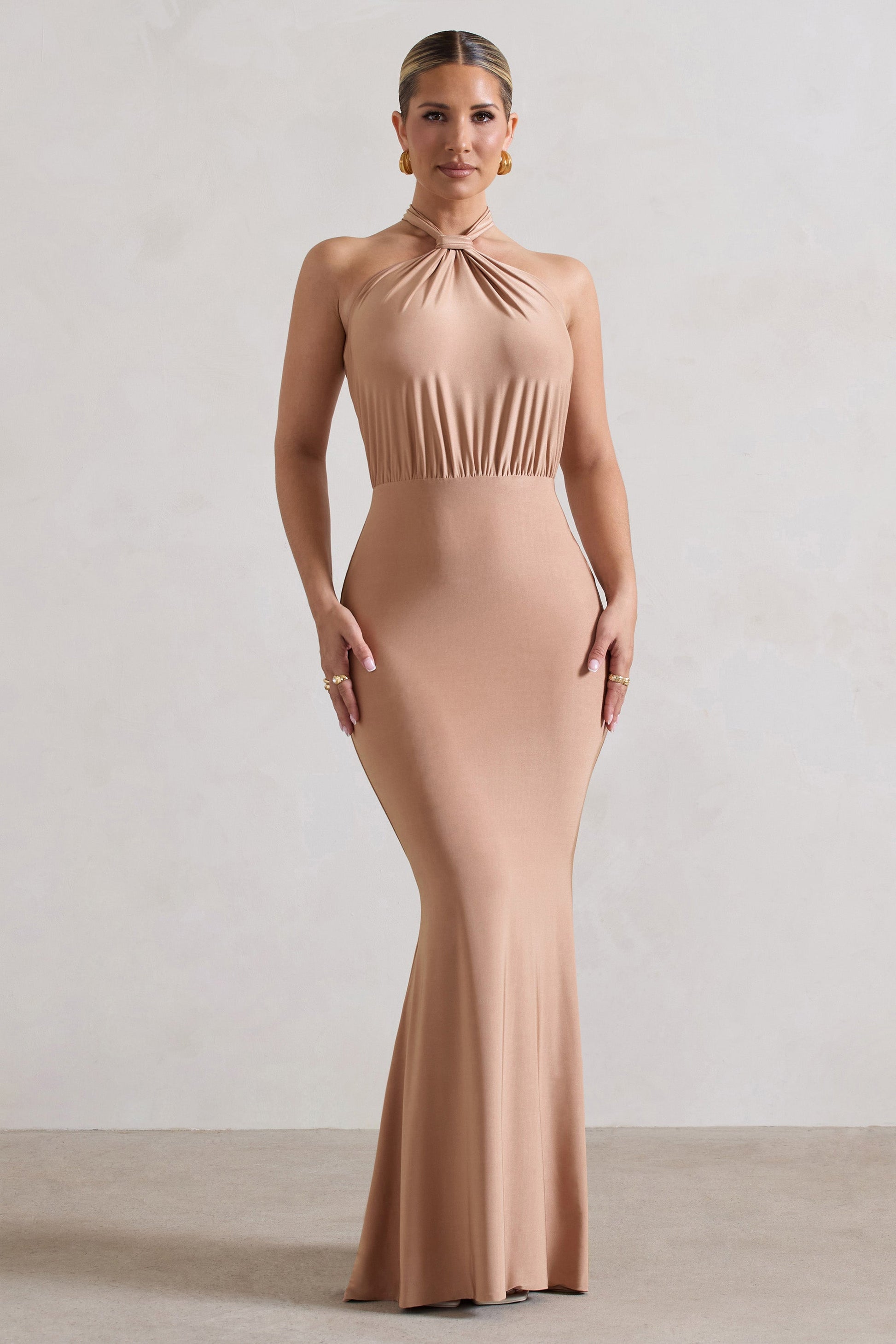 Vanessa | Sand Knot Halter-Neck Maxi Dress