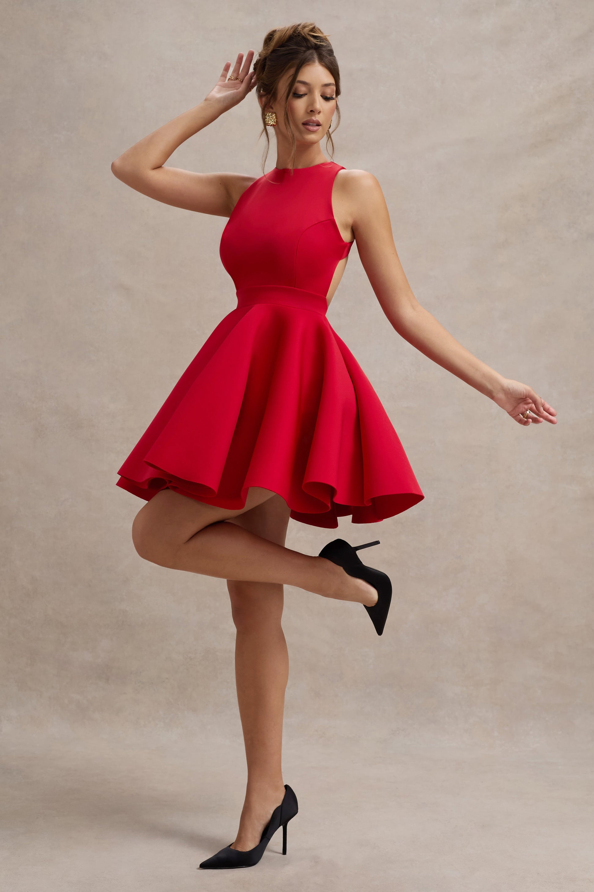 Waverly | Red Racer-Neck Sleeveless Skater Mini Dress