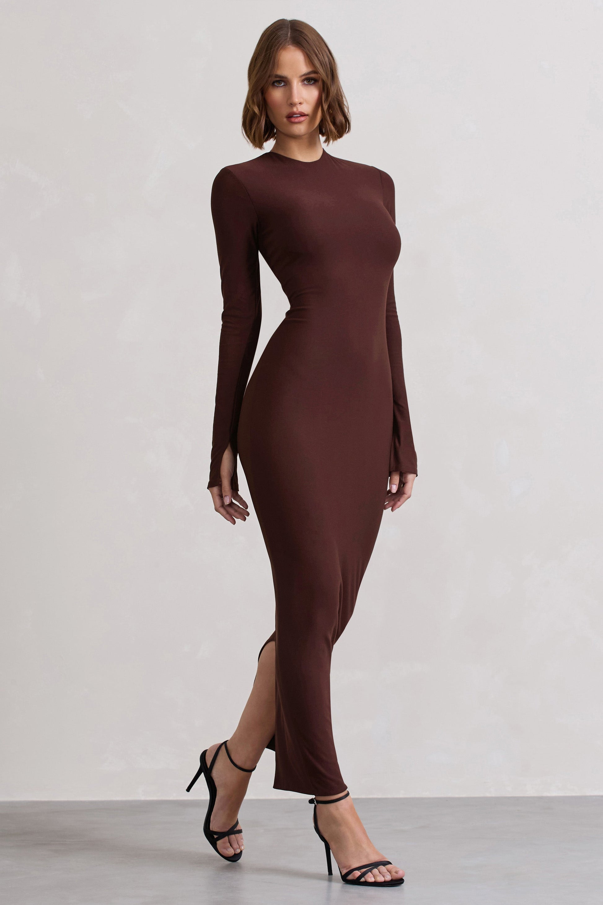 Wonder | Chocolate Brown Bodycon Long-Sleeve Maxi Dress